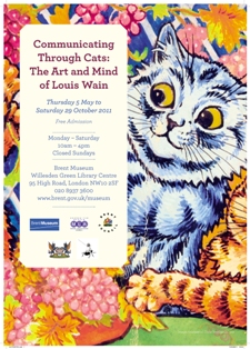 He was a prolific artist, and the exhibition at Brent Museum is filled with over 50 works of art, illustrating the wide variety of styles he employed to depict cats. The exhibition also considers Louis Wain’s mental health, as he spent the last years of his life in mental institutions after being diagnosed as schizophrenic. Through looking at how his work was reinterpreted following his death, and inviting visitors to offer their own thoughts on the artist’s work, the exhibition explores the idea of art as a form of communication and therapy. Once open, we will be adding visitor comments to this blog to continue the discussion about the work of this important local artist online. So please do come along, contemplate and contribute.