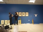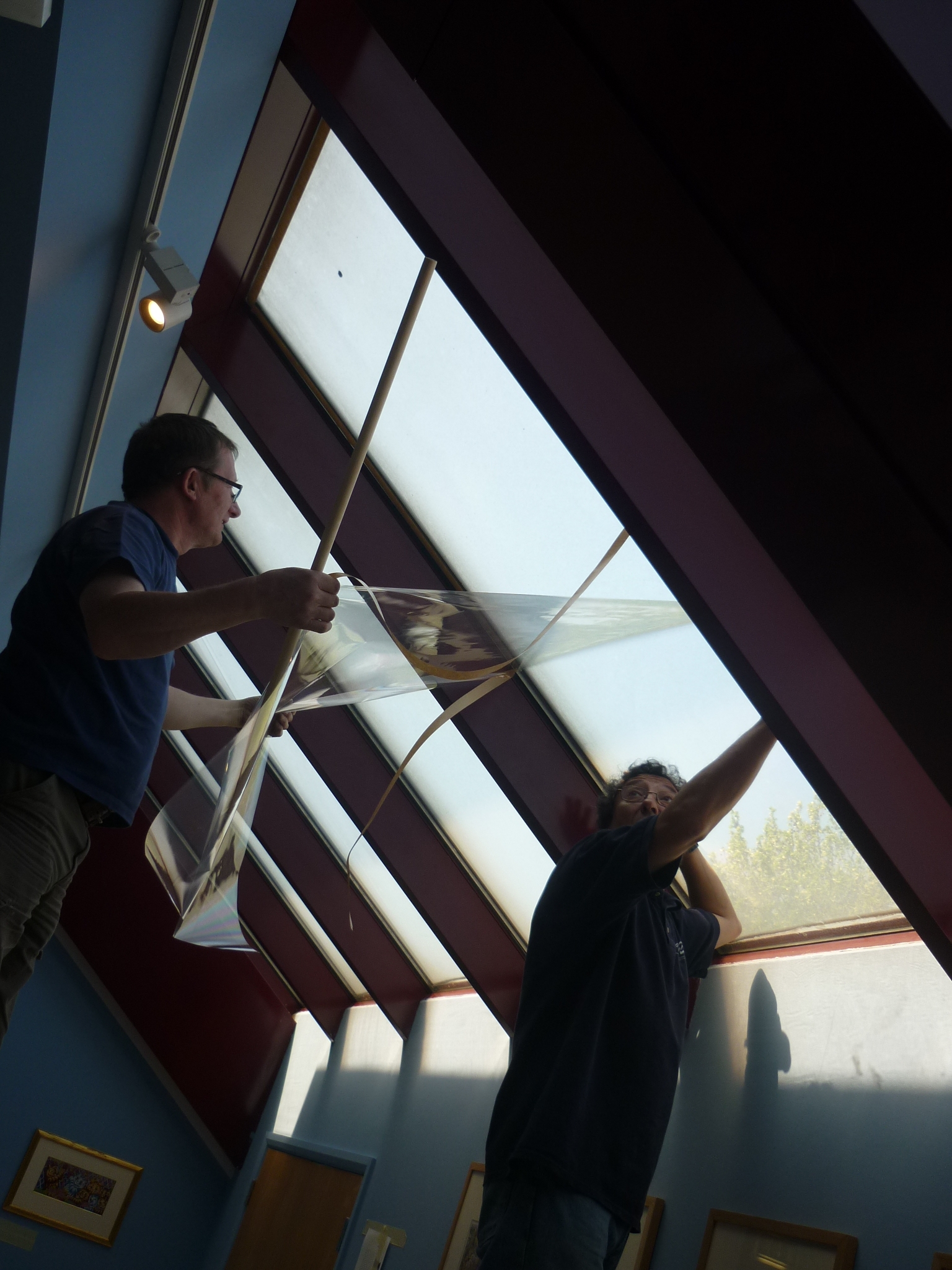Here we have Paul and Graham covering the windows in the gallery with a special UV light filter film, to protect the art works from fading or other light damage.