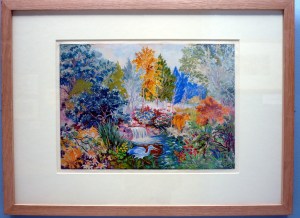This week we’re looking at the landscape paintings by Louis Wain, most of which he painted throughout his time in hospital. Many visitors to the exhibition already familar with Wain’s art have been amazed by his landscape paintings, having expected to find only illustrations of cats on display. As you can see, his artistic skill and bold use of colour extended far beyond the remit of cat paintings.