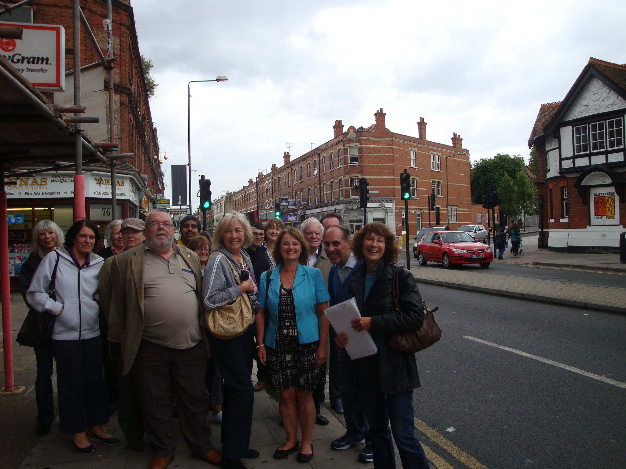 I explained my idea for the tour and said it was going to be a little different, because we were going to be meeting some locals and there would be a few surprises along the way. I then broached the subject of the library centre and then said I would be taking a picture of the group outside the building to be put in the archives. If the building was to be pulled down then the tour group would be part of the history of it.  The idea met with massive approval. It felt like a good start to the tour and with the people behind me, we set off down the High Road to reveal the past, talk to the present and be part of the future.