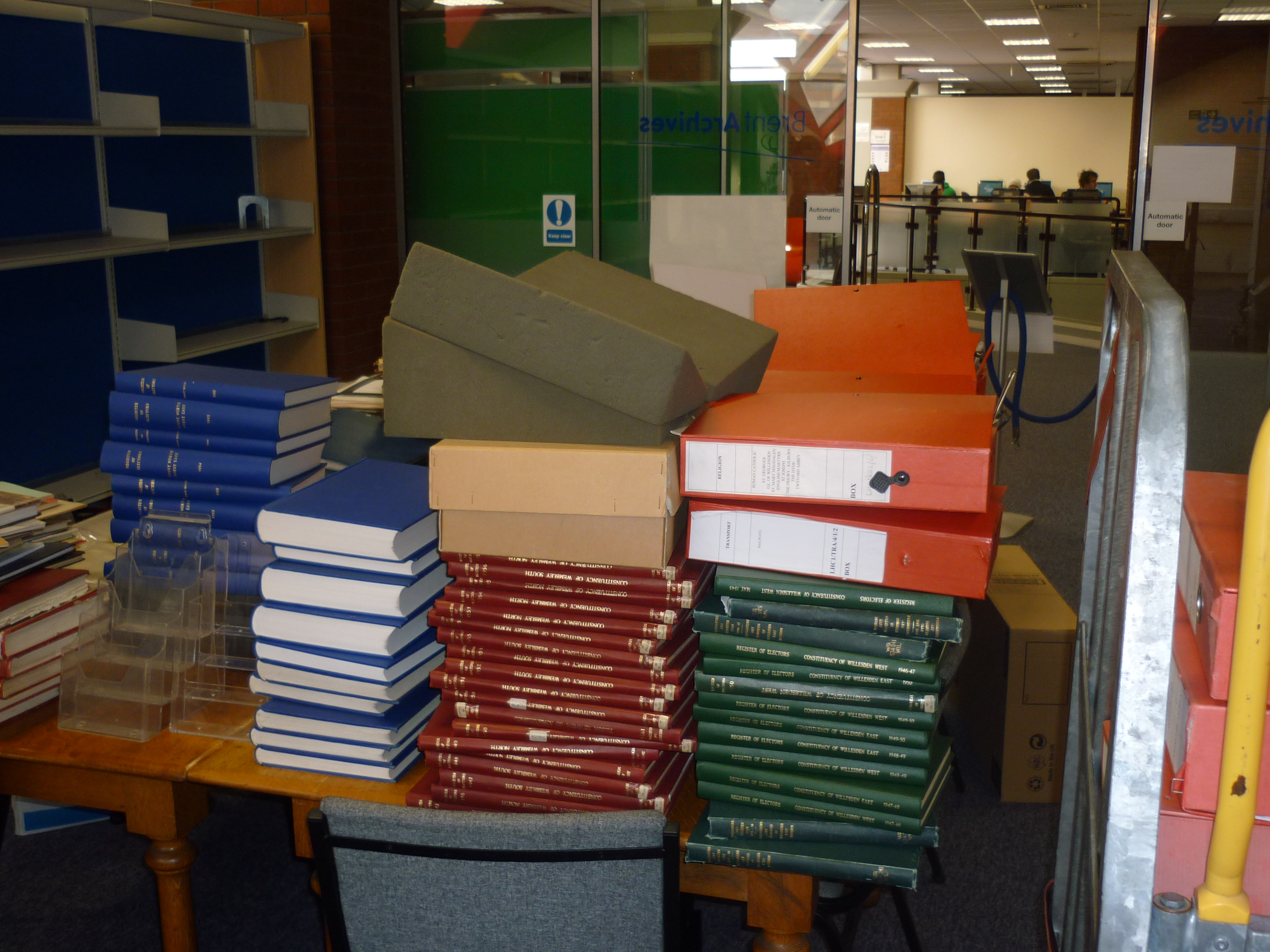 So it is with the clearing of the Archives Search Room, which is now well under way. Last week we took down the bookshelves and transferred the Local History Library books, the book shop stock and many of the red pamphlet boxes to the underground store next door. Today and tomorrow we will move the rest of the pamphlet boxes, the Kelly’s directories and the electoral registers, after which the Search Room will be largely empty.