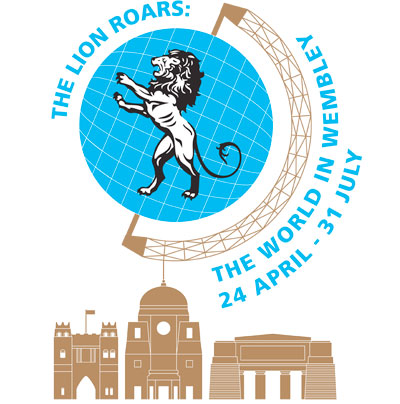 The modern logo designed for the exhibition ‘The Lion Roars: The World in Wembley’ © Brent Museum and Archives.